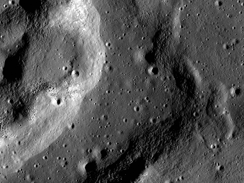یک خطالرأس باریک و دارای دیوارههای تند که «پشتهٔ چروکیدگی» (wrinkle ridge) نامیده میشود، درون دریای بحرانها (Mare Crisium) در این تصویرِ مدارگرد شناسایی ماه قابل مشاهده است. پشتههای چروکیدگی هنگامی شکل میگیرند که سطح ماه سرد و منقبض میشود و این ساختارها نشانگر فعالیتهای آتشفشانی هستند. منبع: NASA/GSFC/ASU